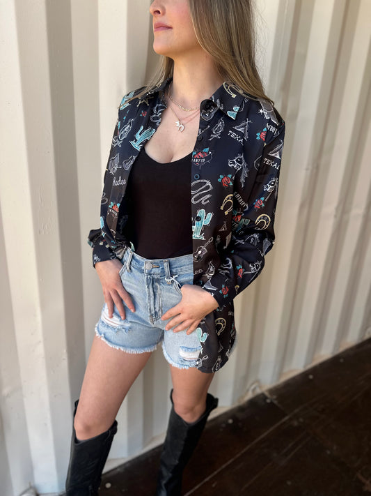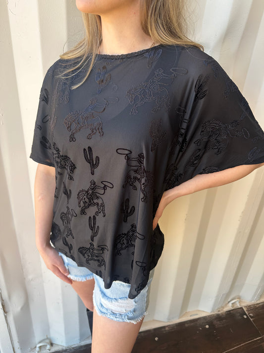 2-Piece Burn out Buckaroo/Cactus Mesh Top: Black