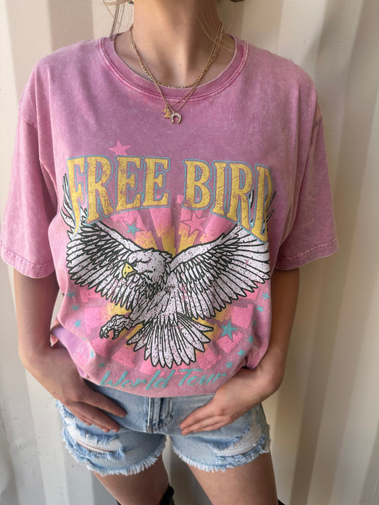 Free Bird World Tour Graphic S/S Washed Boyfriend Fit Tee: Pink